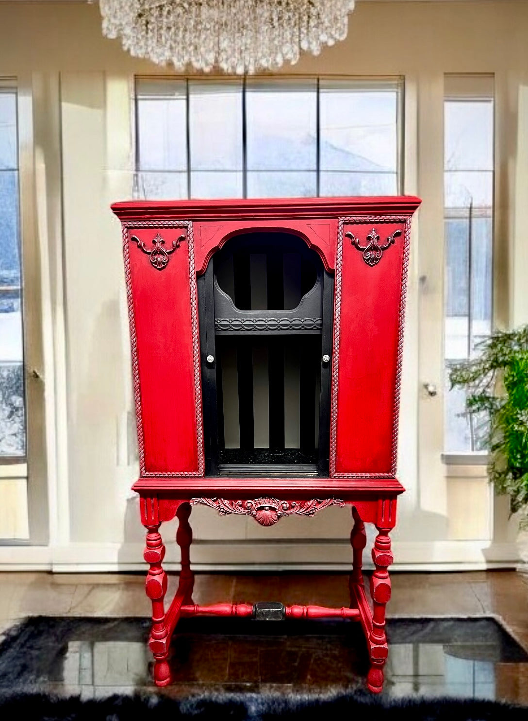 This antique radio cabinet (Atwater Kent) has been totally reloved and refinished. It would make a lovely wine/liquor/bar cabinet and is sure to the conversation piece in your home!