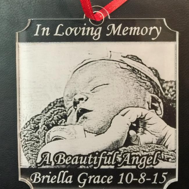 Our Personalized Baby Photo Christmas Ornament is a perfect way to remember any event. The birth of a new baby, your child's milestones, weddings, anniversaries, reunions or memorials, you can't beat these Engraved Acrylic Christmas Ornaments! Add a name, a year, or both! These personalized Photo Christmas Ornaments just glow on a Christmas Tree. Other ideas for these acrylic pieces include rear view mirror hangers and sun catchers. There is no better ornament than a personalized photo Christmas ornament. Sized 2.5" x 2". Order yours today!